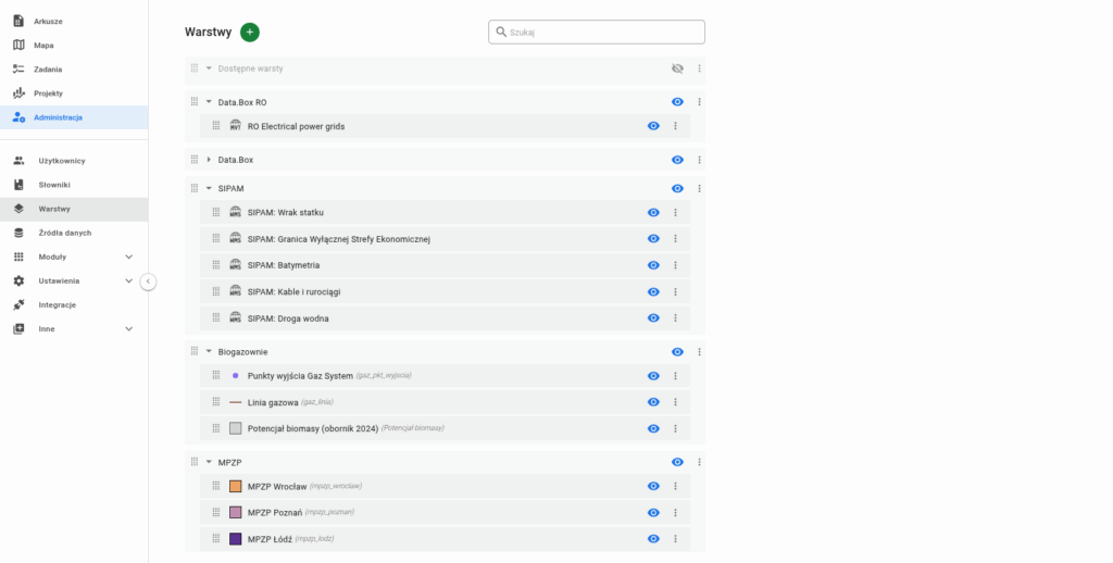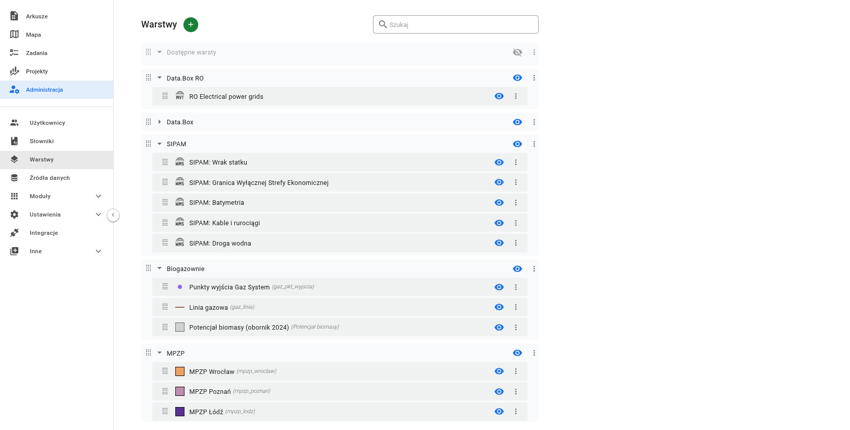 Panel Administracyjny -> Warstwy to miejsce, w którym Administrator zarządza Warstwami.