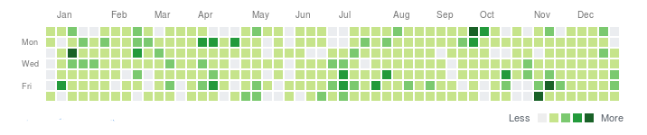 Calendar heatmap to rodzaj wykresu, który przedstawia wskaźnik obliczony na podstawie liczby zdarzeń, które odbyły się konkretnego dnia.