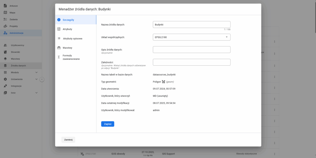 - Szczegóły – podstawowe dane nt. Źródła Danych