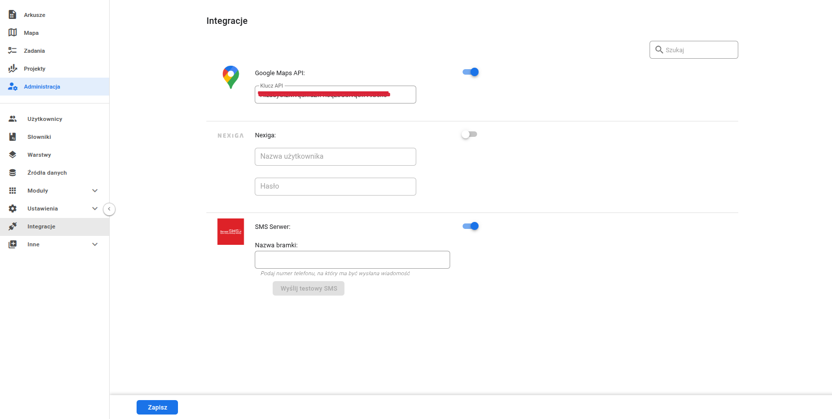 Sekcja w Panelu Administracyjnym zawierająca informacje o integracjach z innymi systemami IT, z którymi integruje się System.