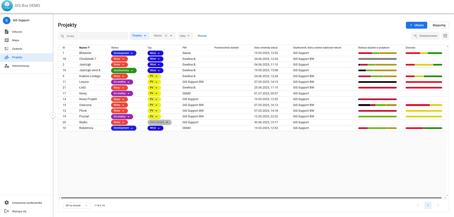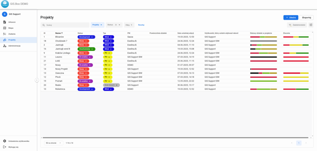 Projekty 42 0 0 1 lipca 2025 Panel Systemu, w którym wyświetlają się wszystkie Projekty, do których Użytkownik ma dostęp. Panel jest opcjonalny (wymaga dodatkowej konfiguracji)