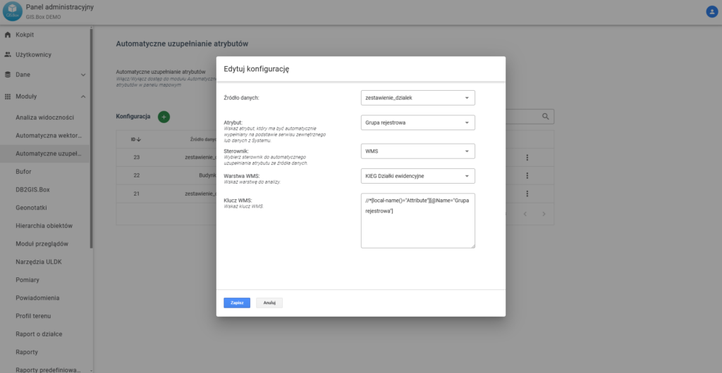 - WMS – przypisuję wartość z informacji o obiekcie z WMS
