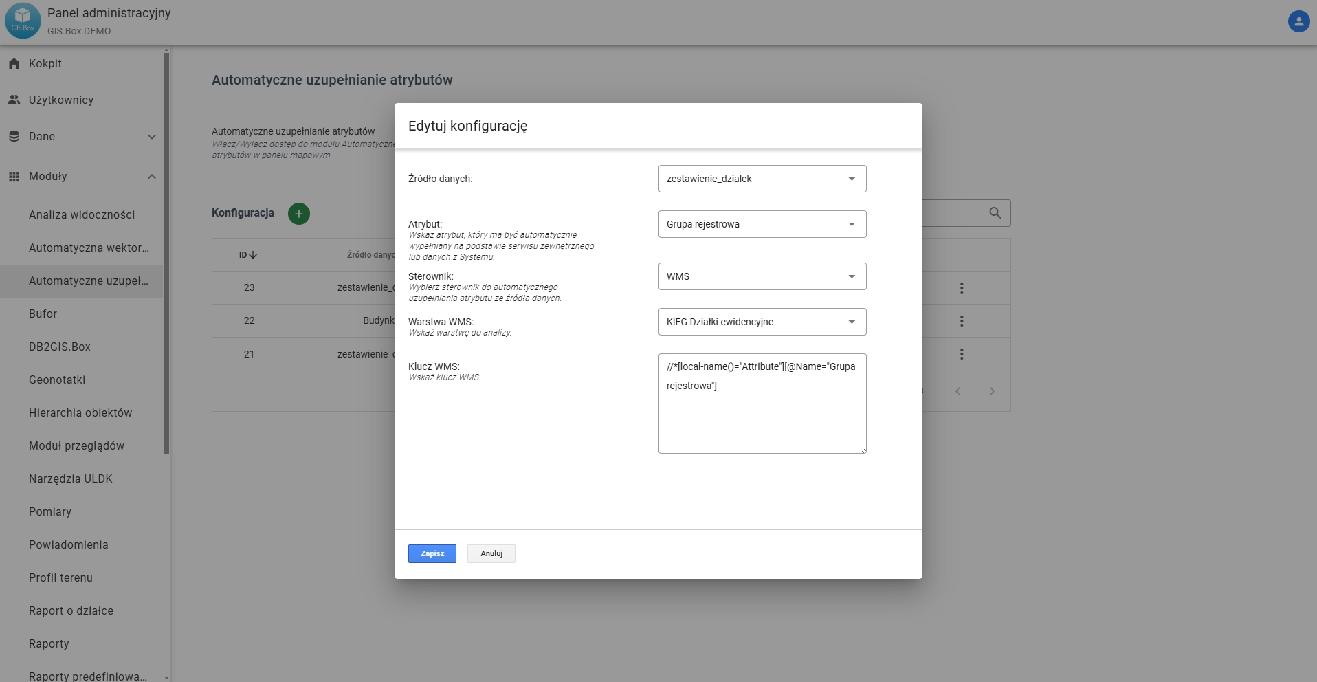 - WMS – przypisuję wartość z informacji o obiekcie z WMS